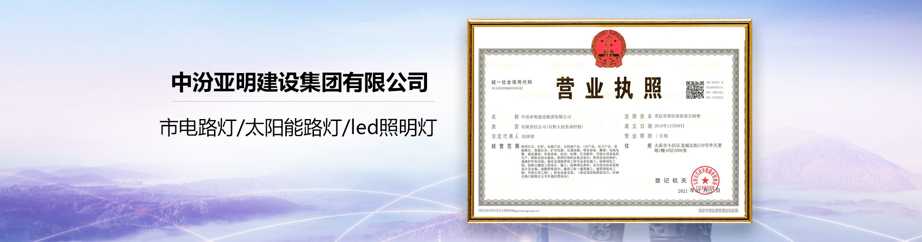 中汾亞明建設集團有限公司(原山西世紀亞明照明工程有限公司)創始于2005年,公司座落于太原市小店區龍城北街170號華天置地1幢10層,注冊資金:107770000元人民幣,是全國建筑裝飾業三優施工企業、中國照明行業百強企業、AAA級信用企業、山西省江蘇商會常務副會長單位、山西省照明電器行業協會執行會長單位。