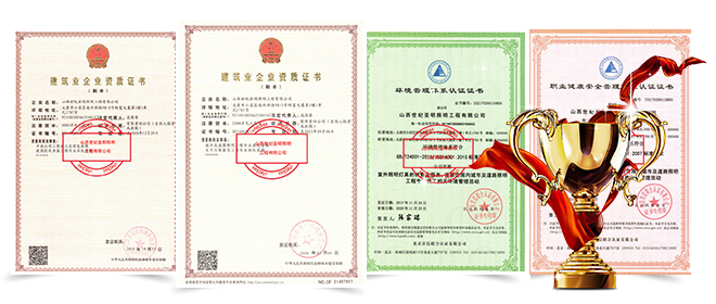 具有城市及道路照明工程承包壹級質、市政公用工程施工總承包叁級、照明工程設計專項乙級、電子與智能化承包貳級、建筑機電安裝工程承辦叁級